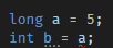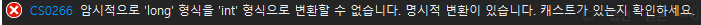 int타입에서 더 상위 차원인 long타입으로 변환은 암시적 변화가 가능하기 때문에 아래와 같이 사용이 가능합니다.