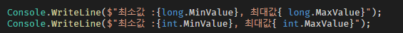 숫자형 타입에는 MinValue, MaxValue를 통해 각각의 숫자형 타입이 가질 수있는 숫자 범위를 알 수 있는데요.