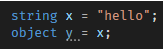 object타입이 string 타입보다 상위 객체임으로 암시적으로 사용이 가능합니다 .