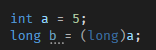 위와 같이 int 타입을 long타입으로 변경하고 싶다면 (long)을 앞에 써줌으로써 "나 지금 타입 변환한다"라는걸 적어주는 것입니다.