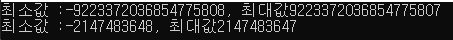 출력을 해보면, long타입이 훨씬 넓은 범위를 가지고 있다는 걸 알 수있습니다.