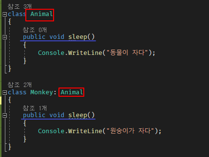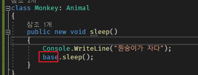 결과적으로 base.sleep();은 Anlmal.sleep();를 의미하게 됩니다.