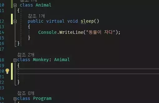 참고로 virtual을 사용하면, 자식(파생) 클래스에서 오버라이딩할 메소드 작성시 자동완성기능이 있으니 적극 사용하길 추천드립니다.