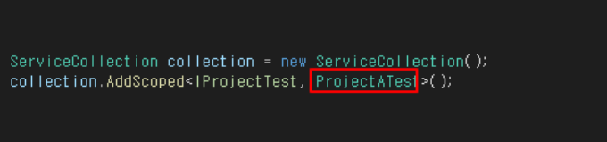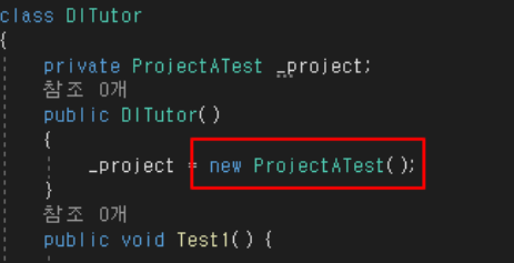 이 코드가 의미하는것은 IProjectTest 인터페이스를 상속한 녀석들 중 어떤 녀석을 구체적으로 사용할지를 정해주는 코드라고 보시면됩니다.