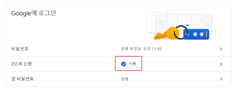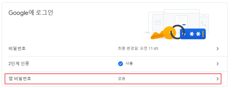 로그인 2 단계 인증을 통해 기존 비밀번호 방식이 아닌 앱 비밀번호를 사용하겠습니다..
