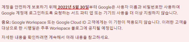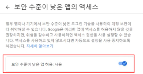 3) 보안 수준이 낮은 앱 허용(예전 방법)