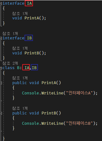 기본적으로 c#의 클래스는 하나의 클래스만 상속이 가능합니다.