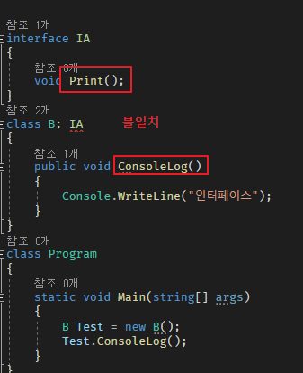 중요한건 인터페이스에서 적은 함수의 명칭과 시그니쳐를 정확하게 일치 시켜줘야 한다는 점입니다.