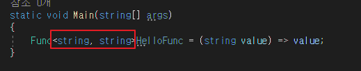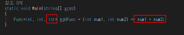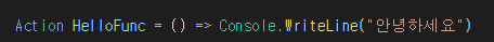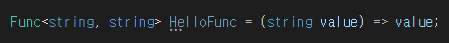 이 함수 또한 아래 Func 델리게이트와 같지만 형태만 조금 다른 것입니다.