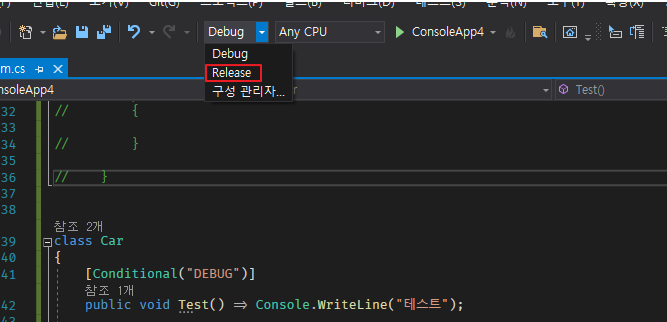 역으로 RELEASE를 인자로 넣으면 디버그 모드일때 실행이 안되는걸 이제는 눈치 채셨을 겁니다.