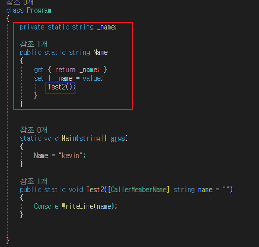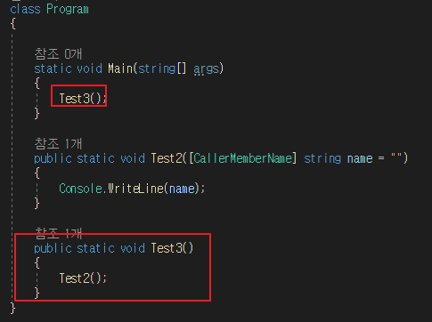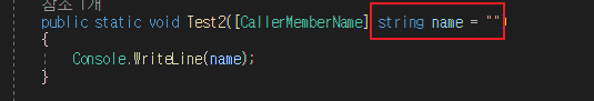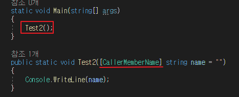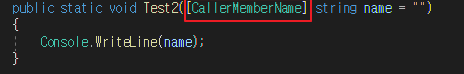 이번에는 [CallerMemberName]가 설정된 함수 Test2의 호출자는 누구인가요?