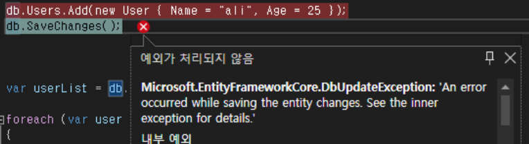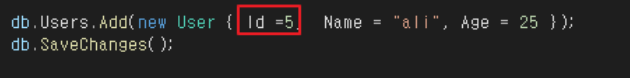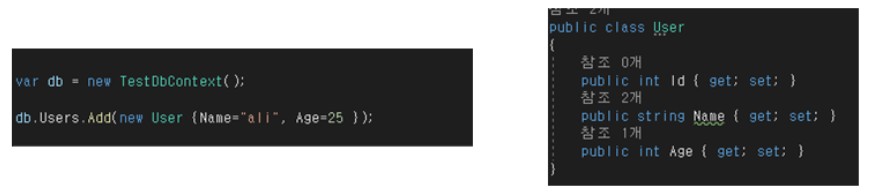 Users.Add() 함수 인자로 User객체를 담는 형태로 DB에 Insert해줍니다.