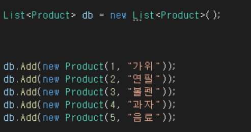 해당 List가 db역할을 할것임으로 db라는 이름으로 지어보았습니다.