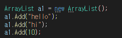 ArrayList생성방법은 위와 같습니다.