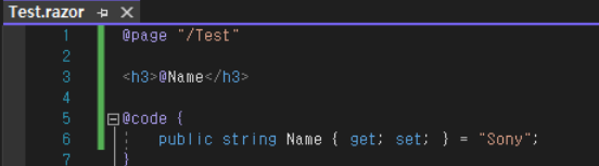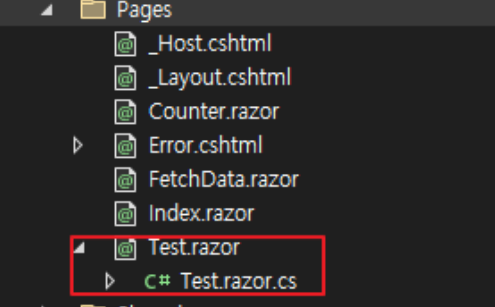 예제로 사용할 Test.razor파일을 먼저 생성합니다.