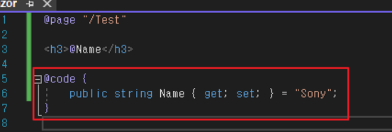 blazor에서 제공하는 razor component 파일에는 UI단과 c#코드를 작성하는 코드 스페이스로 구성되어 있습니다.