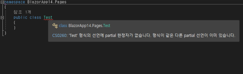 이는 같은 이름의 클래스가 이미 정의되어 있어서 발생하는 에러인데요, partial키워드를 추가해주면 해결이 가능합니다.