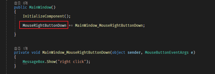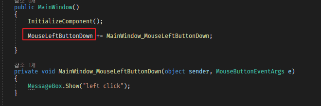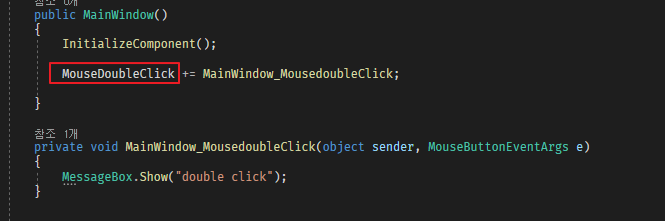 그렇기 때문에 MainWindow_MousedoubleClick함수에 관련 코드를 적어줍니다.