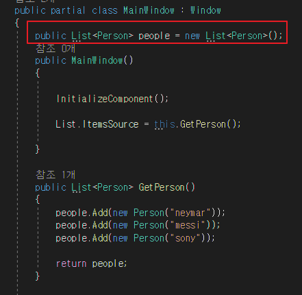 4) Person 객체를 담은 리스트를 xaml로 넘김