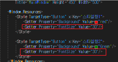 먼저 공통되는 부분을 스타일태그로 만들어줍니다. 그리고 x:Key명도 추가해주고요!(여기선 "폰트스타일")
