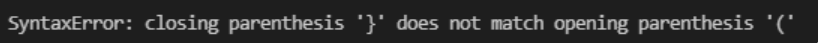 아래와 같이 소괄호로 닫아야 하는데 상황에서 중괄호로 닫아 버리는 경우 입니다.