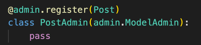 내가 원하는 이름의 클래스명(여기선 PostAdmin) 으로 admin.ModelAdmin 을 상속받은 클래스 형태이다.