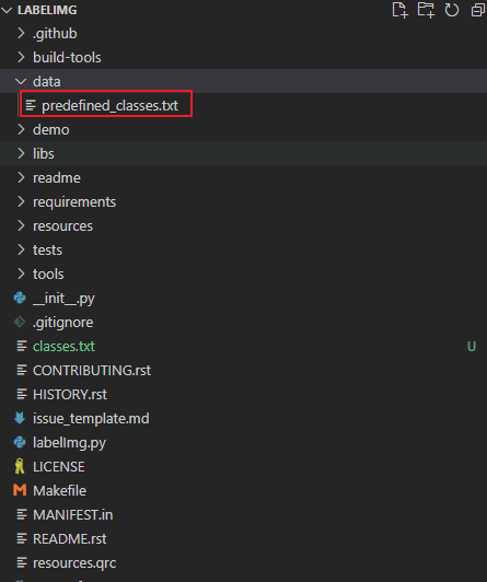 LABELIMG => data => predefiend_class.txt에서 라벨 클래스를 지정해줄 수 있습니다.