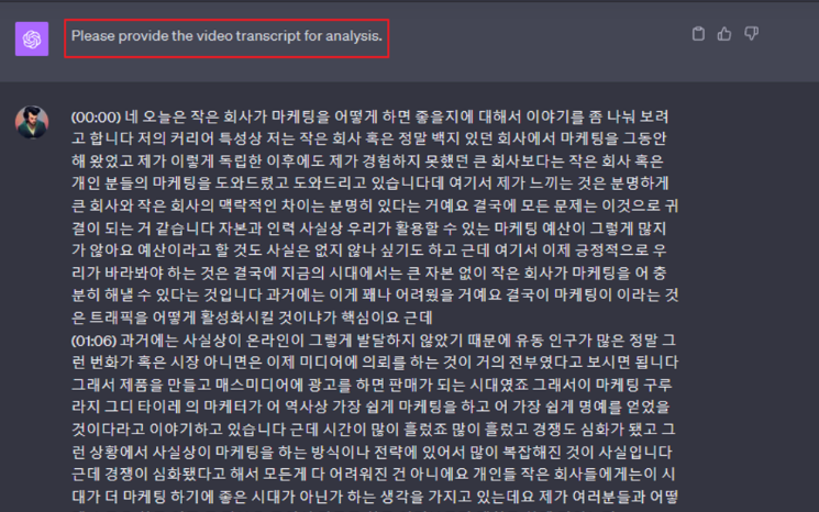 이 분들을 위해 스크립트를 요약해주는 프롬프트를 준비했으니 편하게 사용하시기 바랍니다.