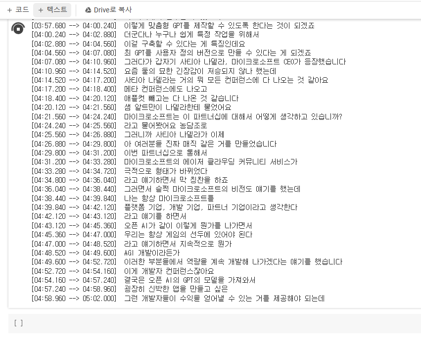 그럼 자막이 추출된 웹페이지가 하나 뜰겁니다. 이를 활용 하시면 됩니다.