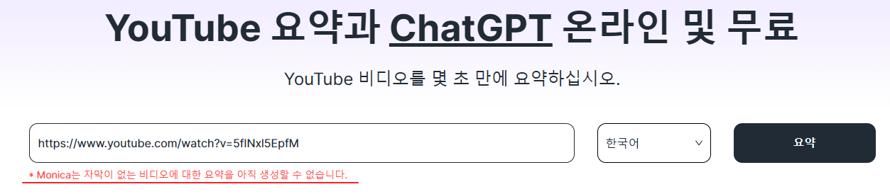 참고) Monica는 자막이 없는 요약은 생성할 수 없습니다.