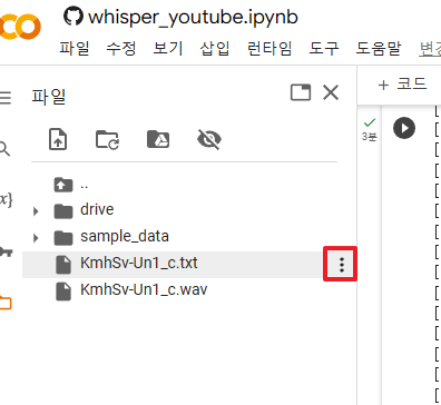 생성된 파일 우측에 있는 점3개를 클릭한 뒤 다운로드 하면 됩니다.