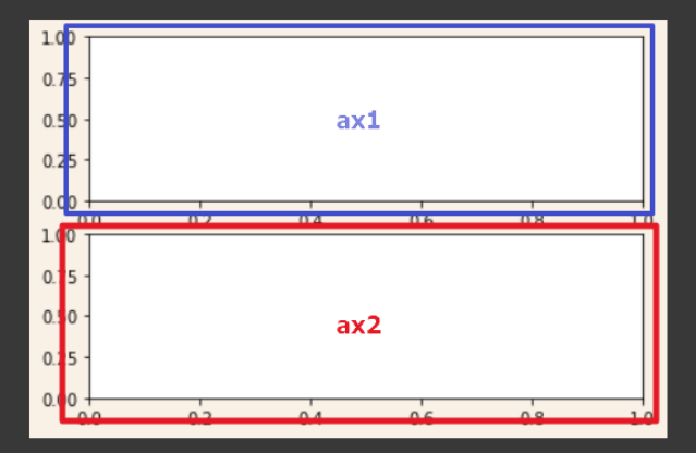 ax1의 두번째인자는 (0,0)임으로 파란색 사각형 위치, ax2는 (0,1) 이니까 빨간색 위치에 놓이게 됩니다.