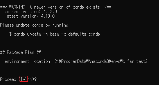 conda create -n 가상환경이름 명령어를 통해 가상환경을 생성해줍니다.