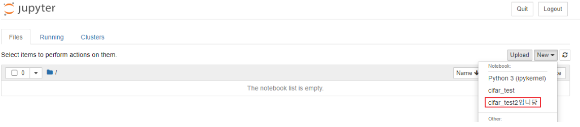 완료 후 다시 쥬피터 노트북에 접속해보겠습니다.