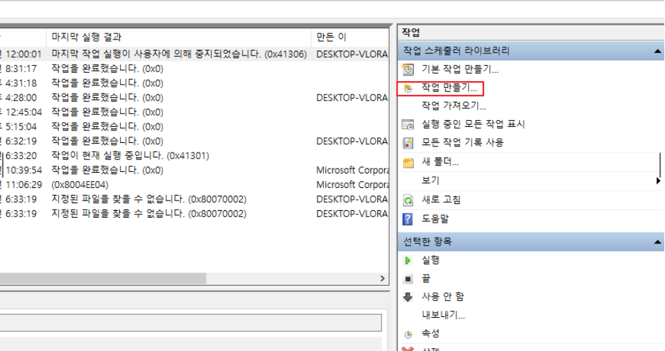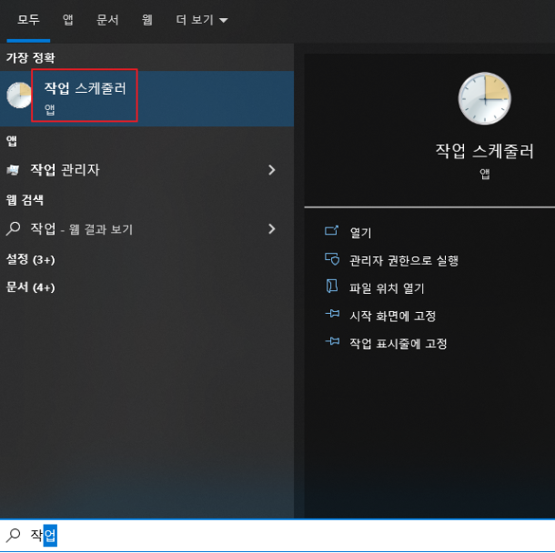 이를 위해 작업스케줄러를 실행 해줍니다.