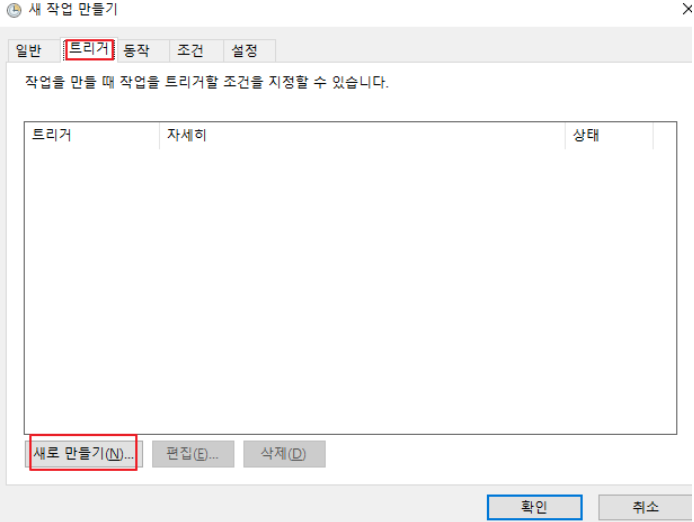 트리거탭을 클릭 후 새로 만들기를 클릭해줍니다.