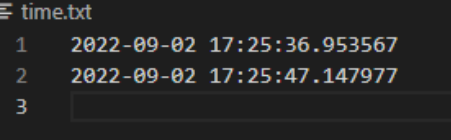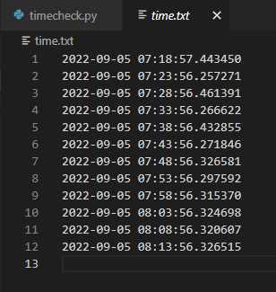 저는 이 값을 time.txt라는 텍스트 파일에 차곡차곡 저장하고 싶습니다.