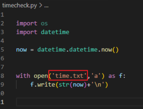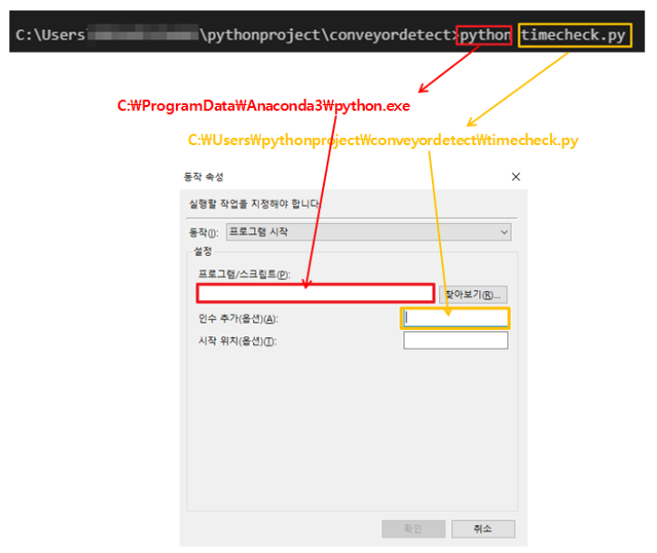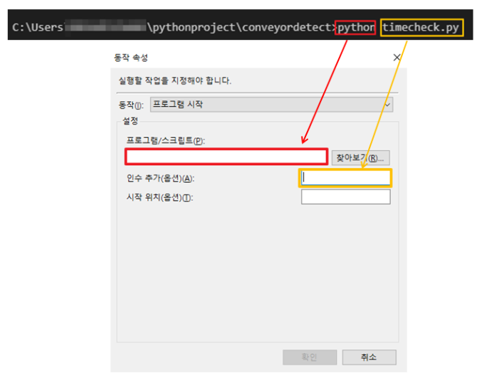 마찬가지로 timecheck.py도 어디있는지 모릅니다. 즉, 절대 경로를 다 적어주셔야만 해당 프로그램이 정상적으로 실행될 수 있습니다.