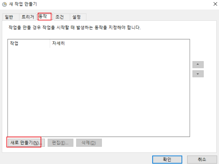 동작 탭은 어떻 프로그램을 실행시킬지를 정해주는 부분이라고 보면 됩니다.
