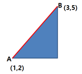 x좌표 끼리의 차를 구하면 빨간색 변을 구할수 있고,
