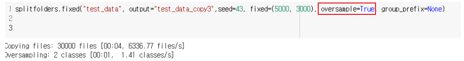 실행할 때마다 각 폴더에 할당되는 파일이 달라질 수 있으니 고정을 위해 seed번호를 적어줍니다.