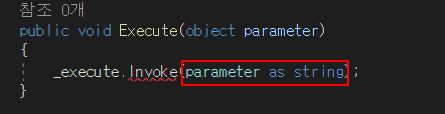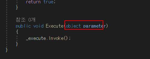 CommandParameter로 들어온 값은 Execute함수의 인자로 들어오게 됩니다.